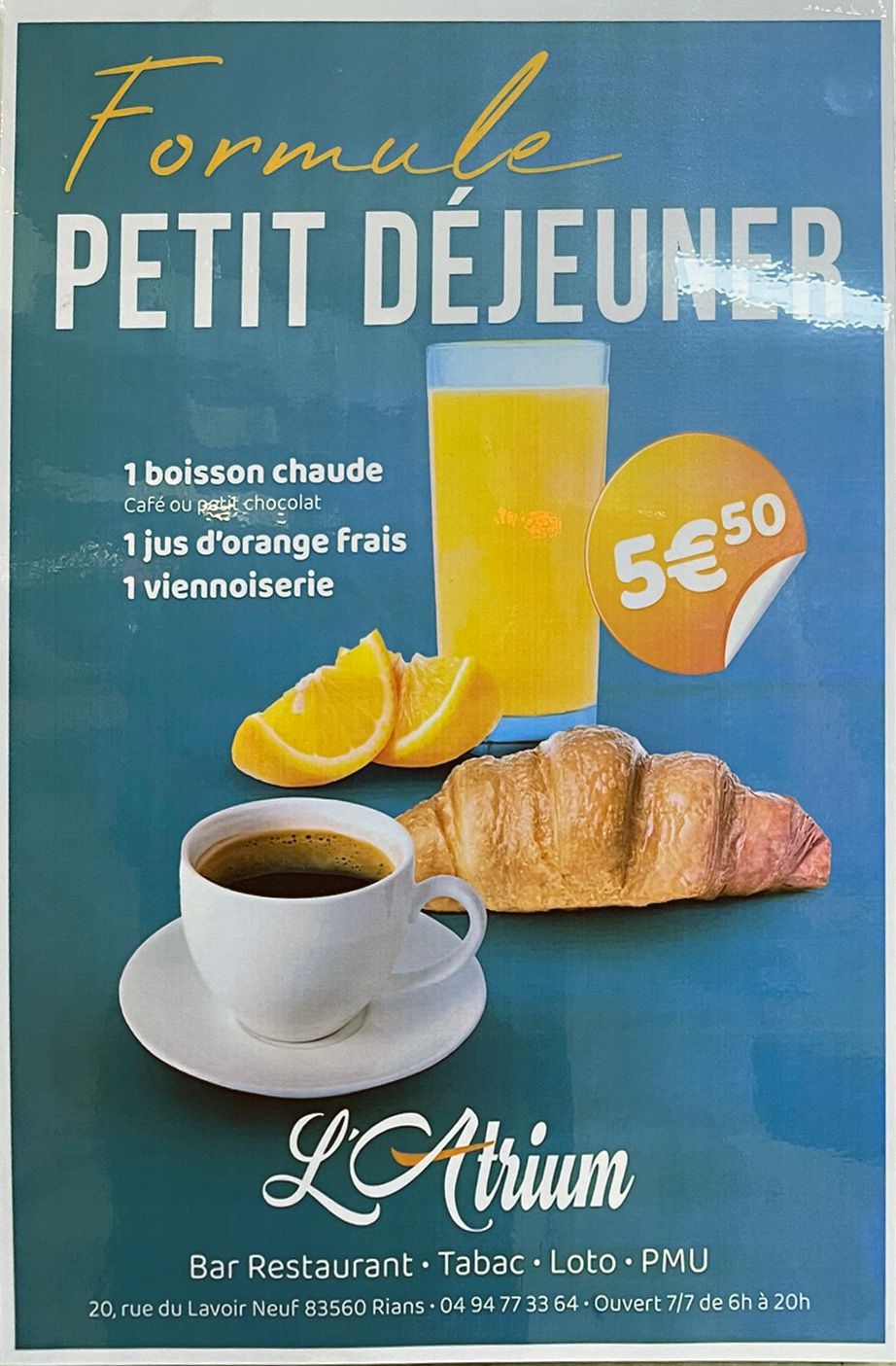 Horaires: Ouvert 7 /7 6h - 20h et plus selon les soirs.