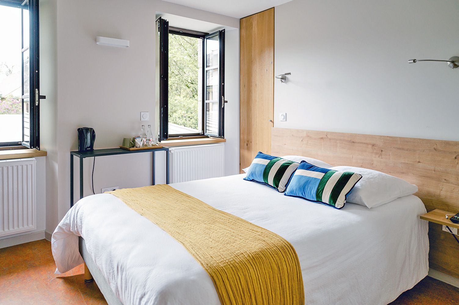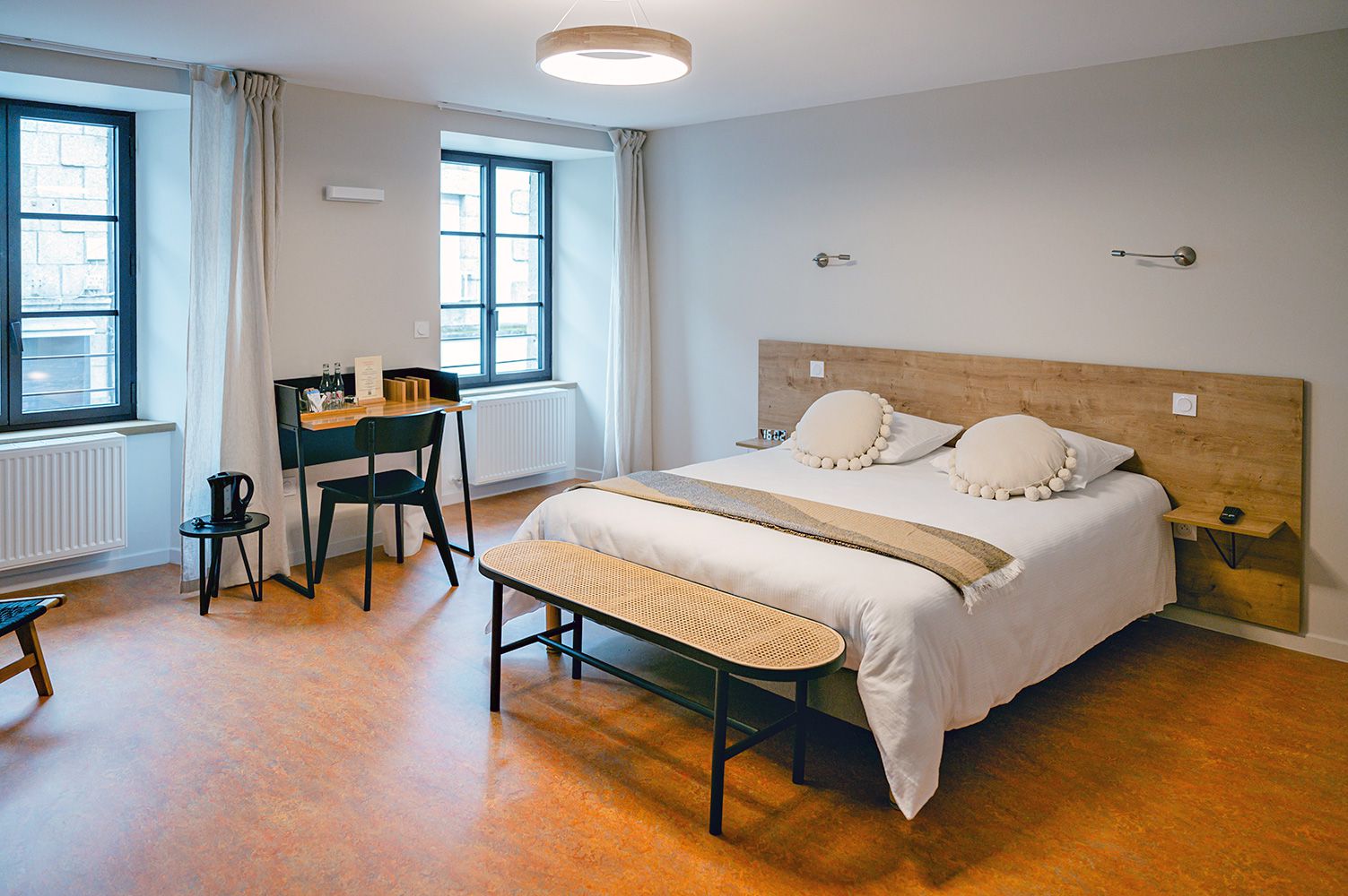 Dans les chambres aux beaux volumes (de 22 à 29m²), vous trouverez tous les équipements attendus : télévision à écran plat, connexion Wifi gratuite, espace bureau, plateau de courtoisie, bouilloire électrique, douche à l'italienne...