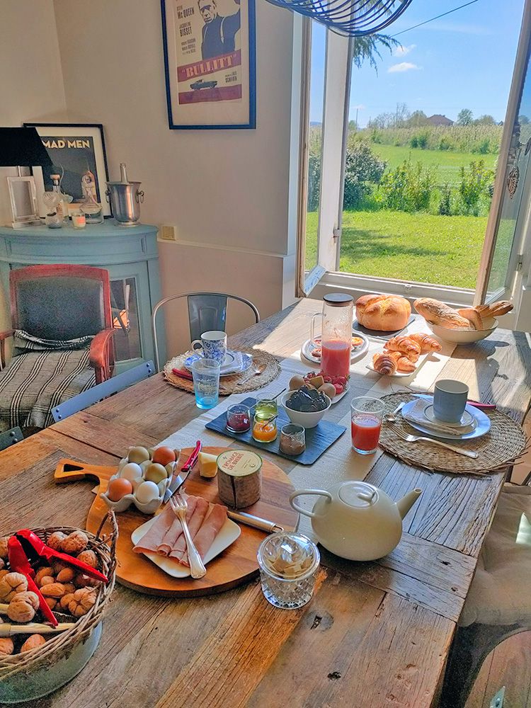 Petit-déjeuner et table d'hôtes Chaque matin, savourez un petit-déjeuner copieux composé de produits frais et locaux.